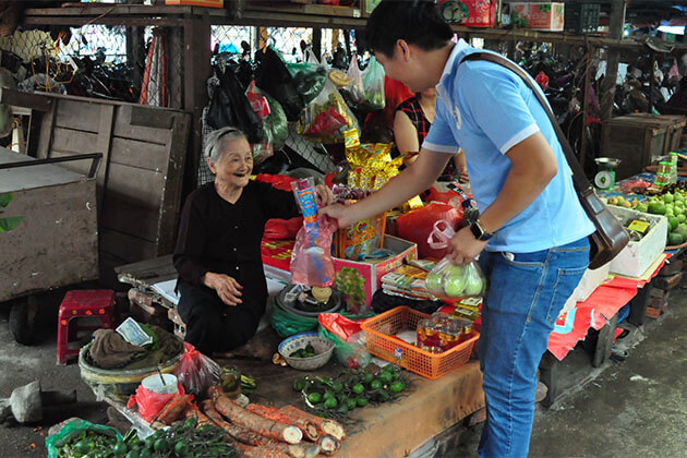 Pick up at the hotel at around 8 AM, we will drive 15 KM out of the city centre to Dong Ngac Cultural Village. Just some steps away from the busy roads, Dong Ngac Village hides in a peaceful surrounding of rice fields, flower fields, ancient houses as well as new modern houses. On arrival at the village, we will stop at a local market to see the daily life of the local, try your bargain skills to buy some fresh ingredient for our cooking class today before walk to an ancient house. Get welcomed by the host and talk with her over a cup of green tea, we then pick up our bike to ride around the village with stops at Communal House, the ancient house of Do family, an oldest school built in 1921. Venture further in the village, we cyclo to Tay Tuu flower village and see different kinds of colourful flowers are taken care by the local farmers.